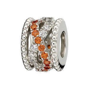 CONTA PRATA SILVERADO CONNECTIONConta em prata 925% para pulseiras silverado redonda com uma fila de pedras laranja entrelaçadas com pedras brancas