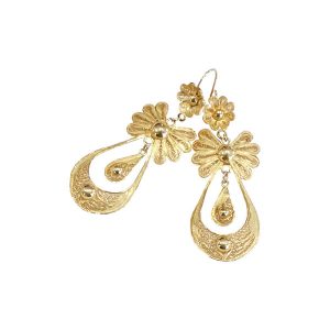 Brincos em prata dourada 925% filigrana com flor de gancho