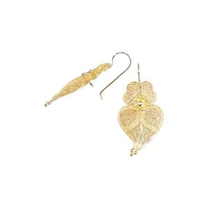 Brincos em prata dourada 925% coração de Viana em filigrana