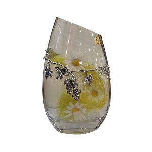 Jarra diagonal em vidro com aplicação de folhas em estanho á volta