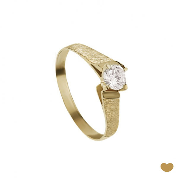 Anel em ouro amarelo 19k, solitário fosco com 1 zircónia