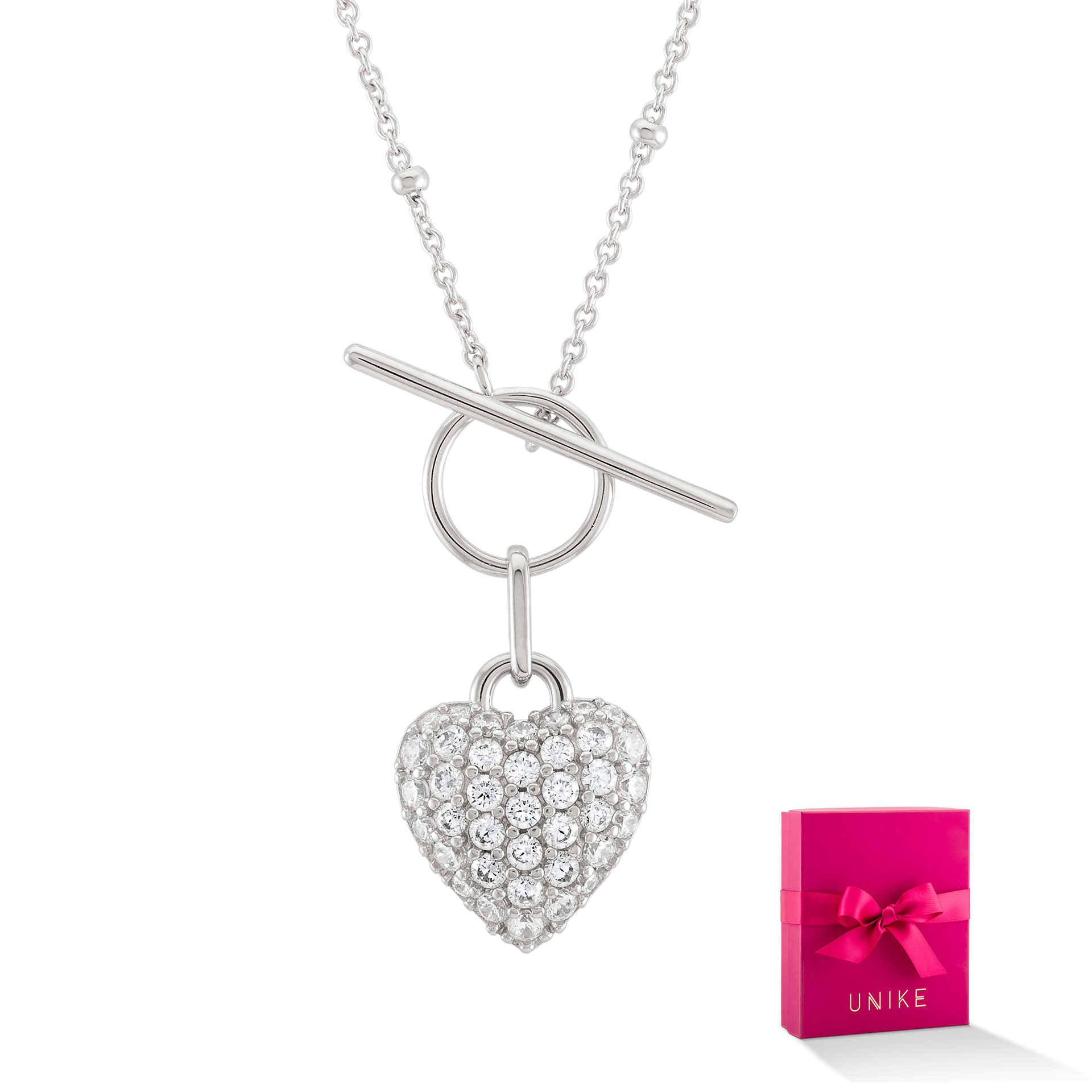 O Colar Dia da Mãe Coração & Travinca Prateado da coleção Classy da UNIKE foi criado para celebrar o amor com um detalhe ainda mais pessoal. Em Prata de Lei 925 com banho de ródio, apresenta um pendente em forma de coração com zircónias brancas e fecho travinca frontal, para um toque moderno e elegante.